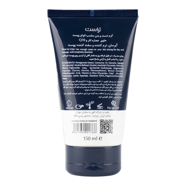 آبرسان قوي، مرطوبكننده و نرمكننده پوست - ضدچروك و سفتكننده پوست (حاوي كوآنزيم Q10) - تقويت لايه دفاعي پوست - آنتي اكسيدان قوي (حاوي ويتامينE) - شادابكننده و لطافتبخش پوست - مناسب انواع پوست