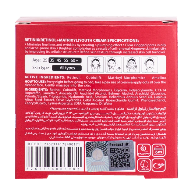 مغذی، تقویتکننده سلولها با خاصیت لیفتینگ و سفتکنندگی پوست - ازبینبرنده سریع چینوچروکهای پوستی نسبت به سایر کرمهای ضدچروک - جلوگیری از ایجاد چینوچروک روی پوست - کمک به افزایش استحکام و بازسازی سلولهای پوستی - کاهش و تسکین التهابهای پوستی با ترکیبات آنتیاکسیدان - آبرسانی مؤثر پوست با جلوگیری از تبخیر رطوبت سطحی پوست - مناسب افراد 35 سال به بالاجمعكننده منافذ باز پوست