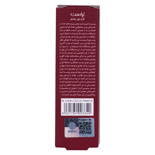 ضدچروك، پف و تيرگي دورچشم - كاهش چروكهاي عمقي و خطوط كنار (پنجه كلاغي) - ضد افتادگي پلك و پركننده چروكهاي سطحی - آبرسان، شفافكننده و ضدالتهاب - ضدراديكالهاي آزاد (حاوي ويتامينهاي A,C,E) - مناسب انواع پوست